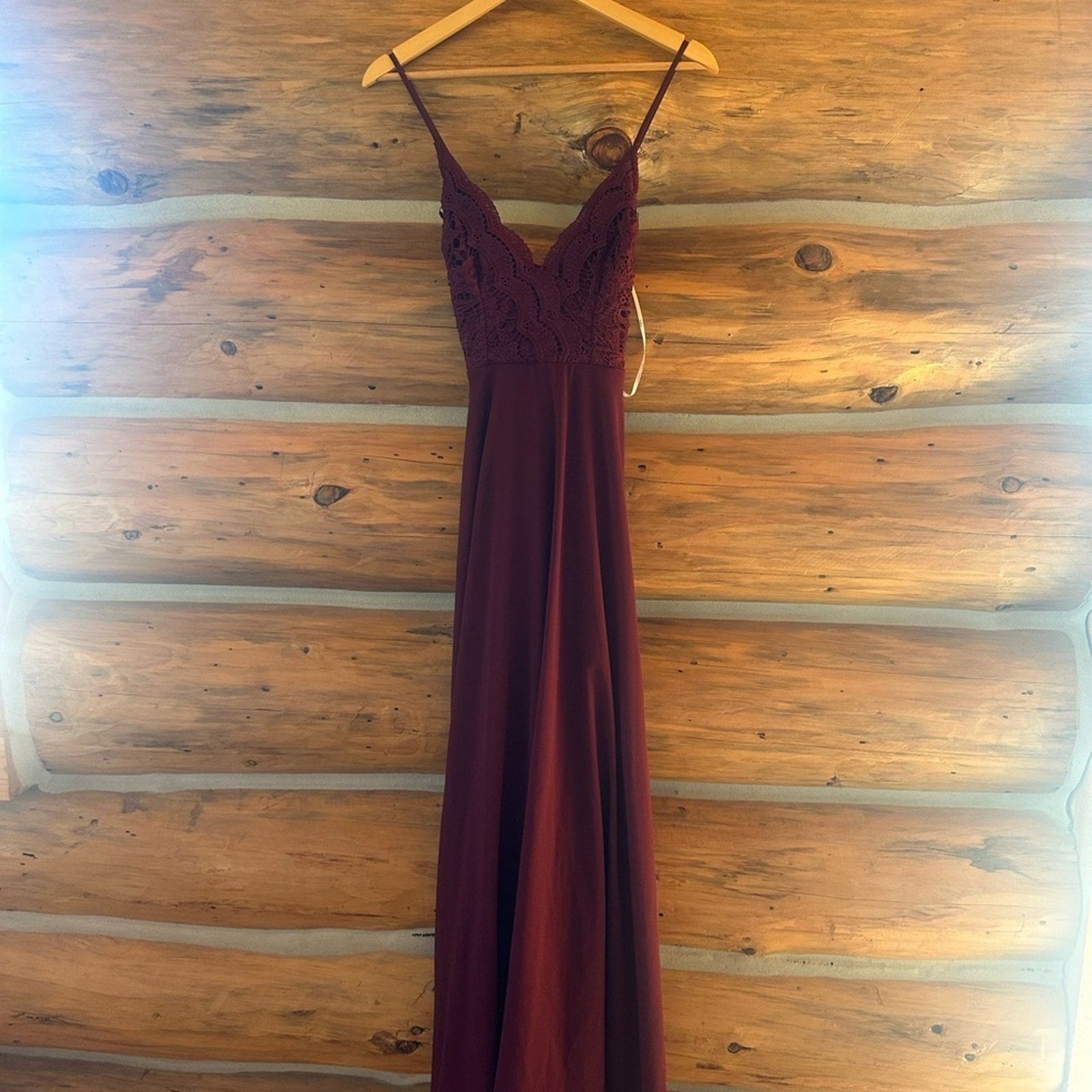 Lulus Madalyn Burgundy Lace Maxi Dress size XS