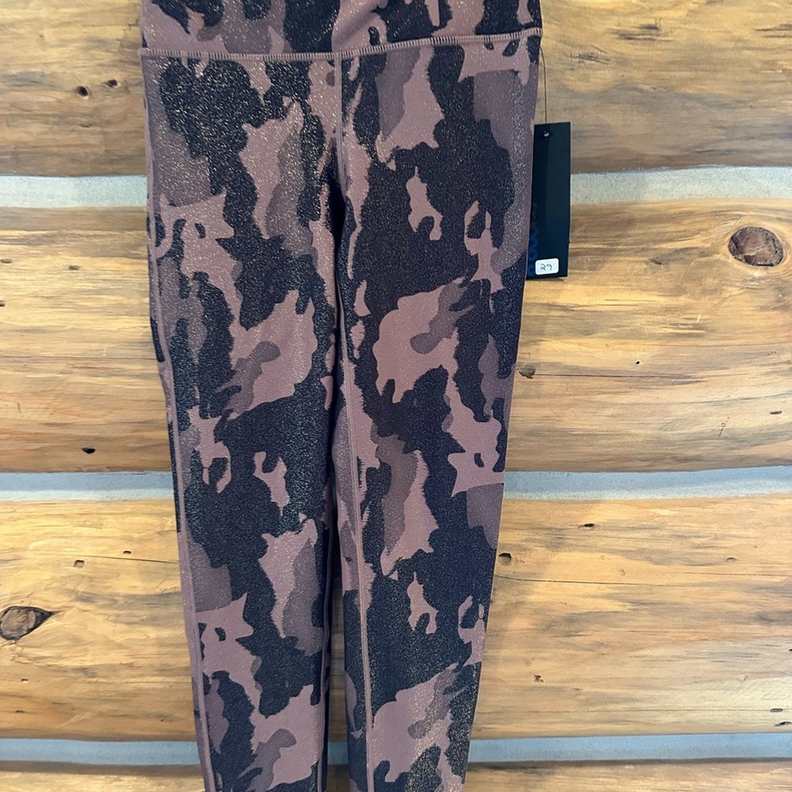 These foil camo leggings feature a subtle gold glitter, high waist for support, and has a hidden phone key pocket in the band. Four way stretch. New with tags