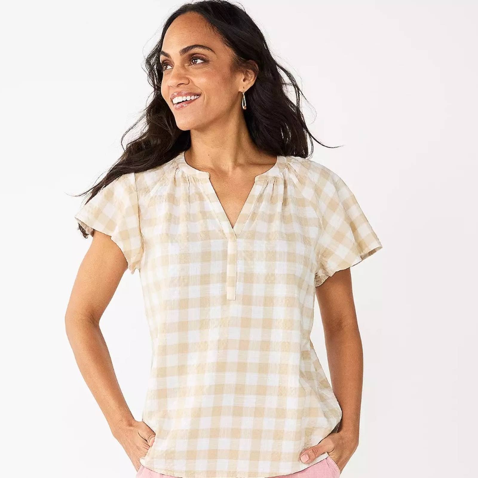 Sonoma Goods For Life Flutter Sleeve Y Neck Top size Small