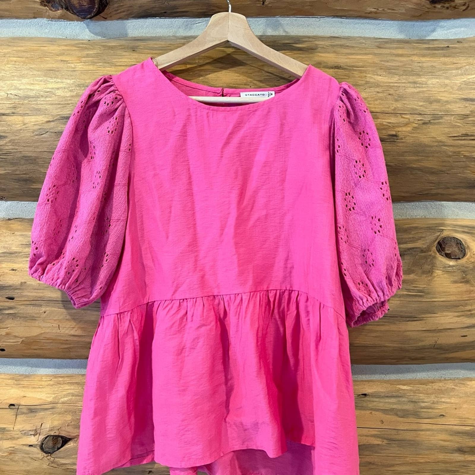 • Load image into Gallery viewer, Staccato Puff Sleeve Pink Top size Medium