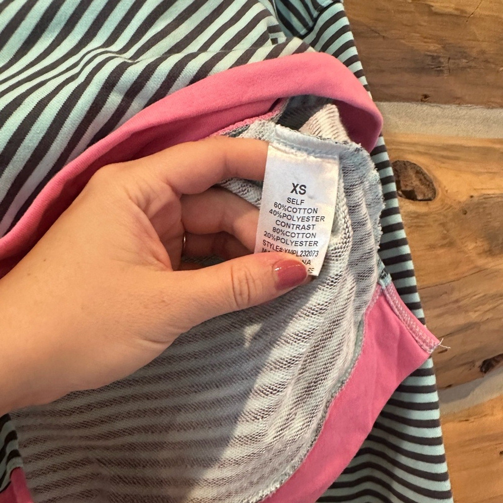 Pink Lily THINK ON IT PINK, NAVY, AND CHARCOAL STRIPED CONTRAST TRIM PULLOVER