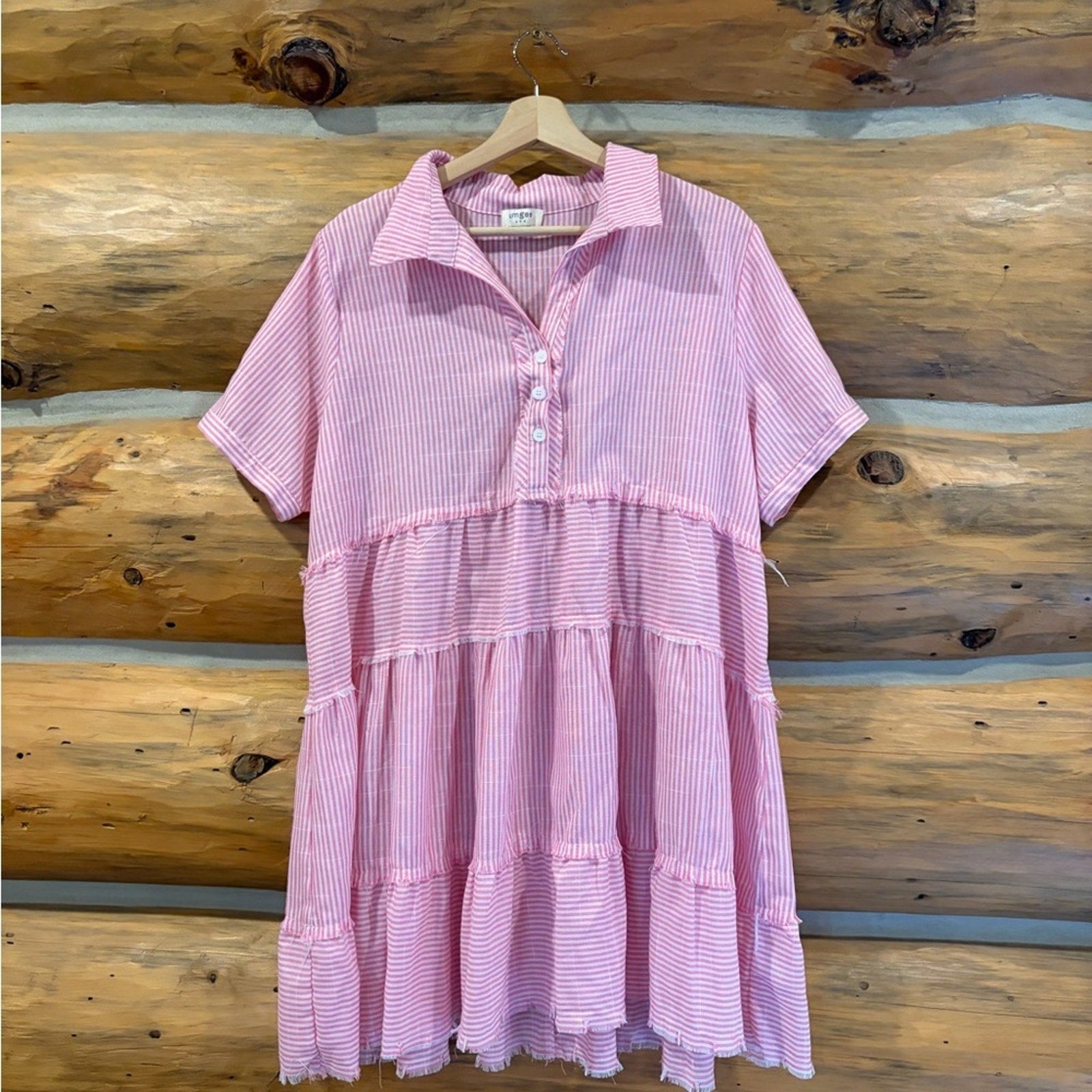 Umgee Pink Striped Babydoll Dress size L