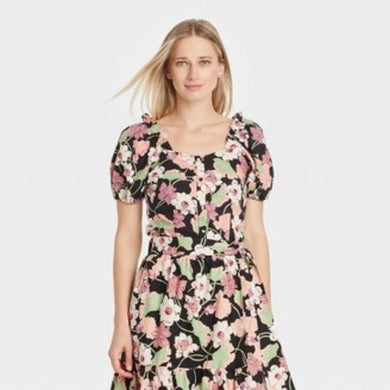 Who What Wear Floral Puff Sleeve Button Top size XXL