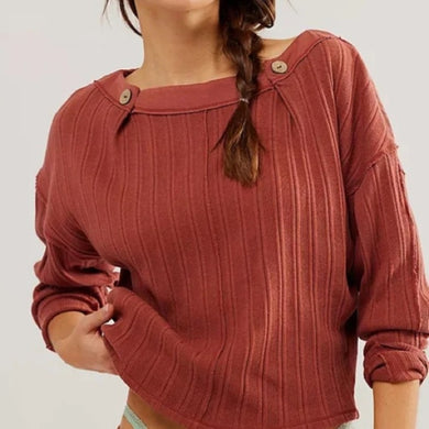 Free People Intimately Around The Clock Henley Sweater Oarmeal Ribbed Pullover size L