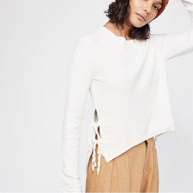 Free People White Polka Dot Mesh Long Sleeve Crop Top size L