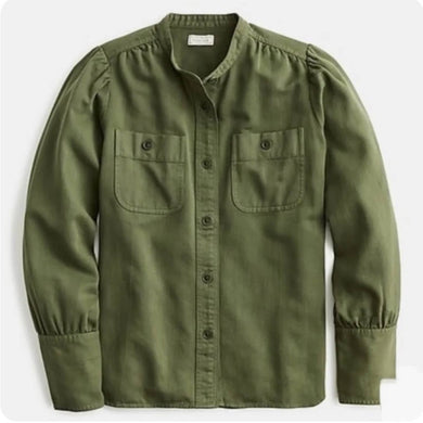 J CREW POINT SUR Women’s Draped Button Twill Shirt Army Green Long Sleeve size small