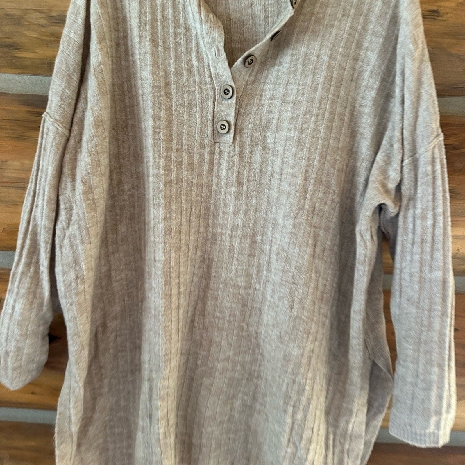 Free People Intimately Around The Clock Henley Sweater Oarmeal Ribbed Pullover size large. Gently used