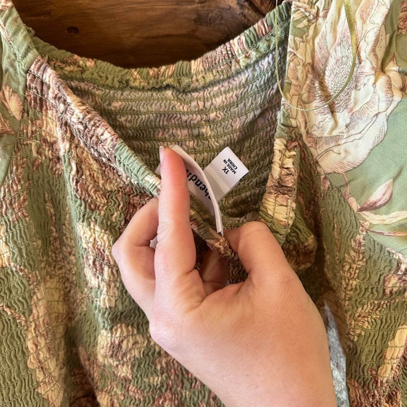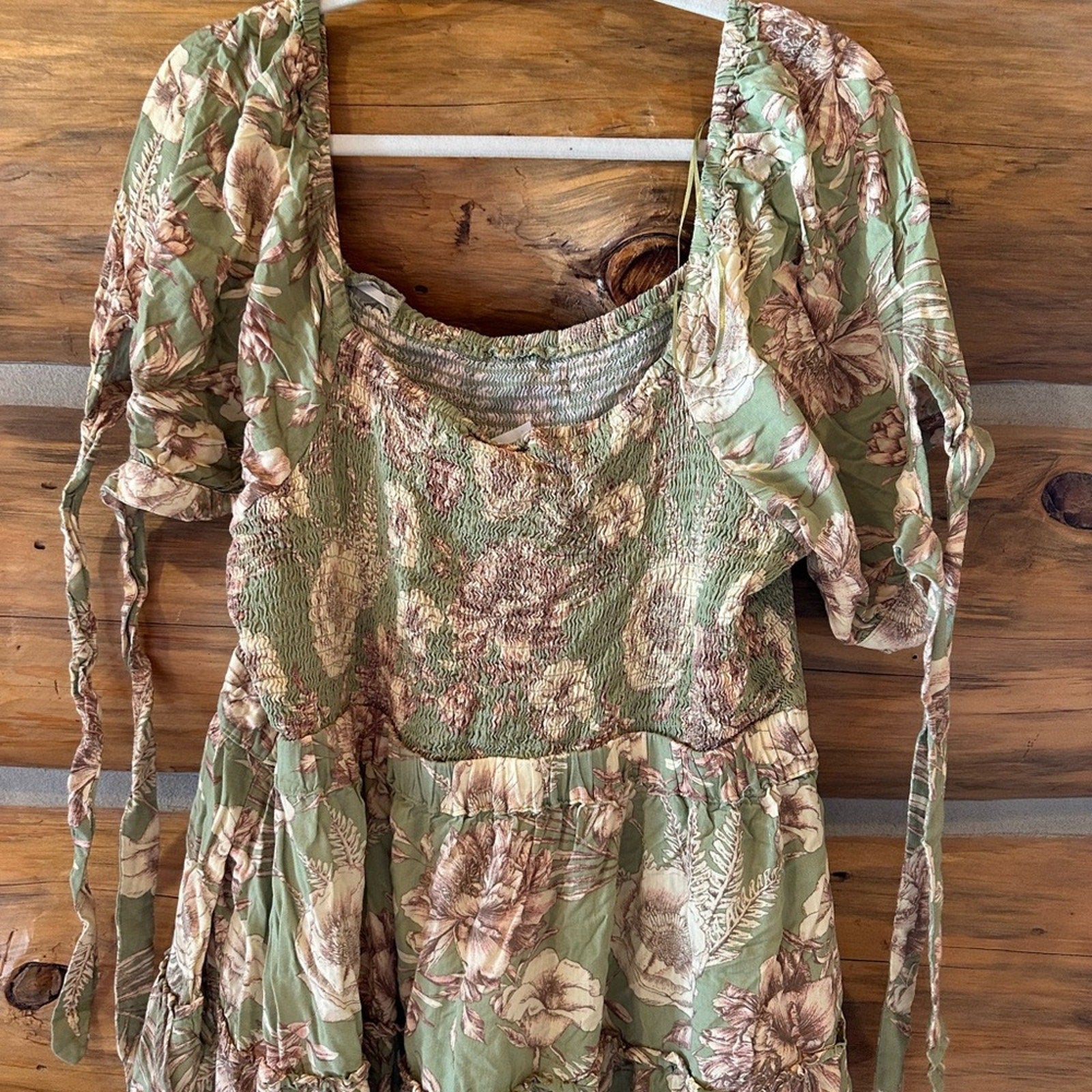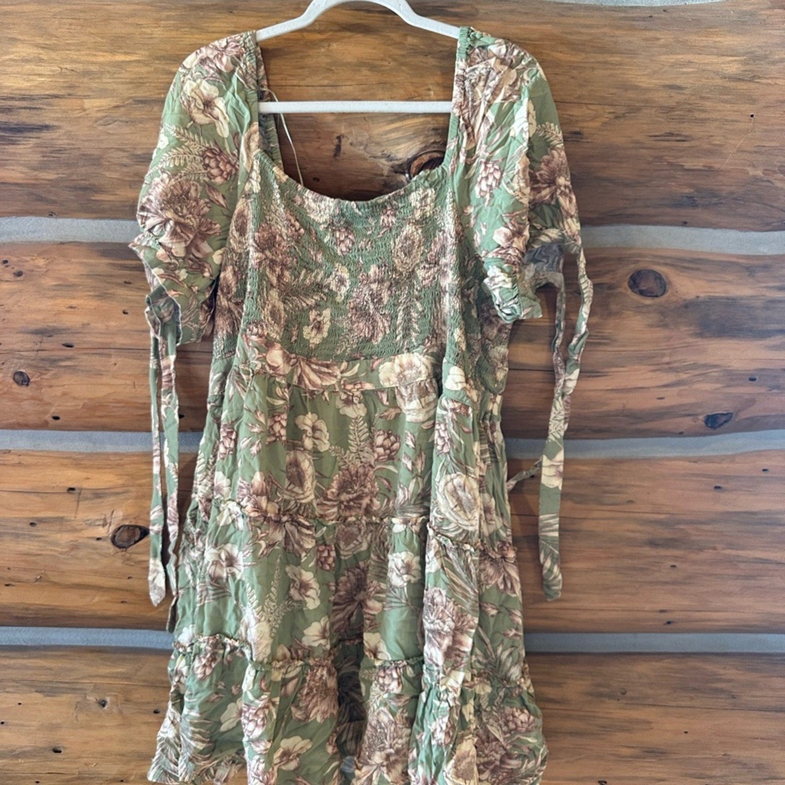 Agua Bendita x Target Dress Women’s Green Floral Smocked Short Sleeve Mini size 1X