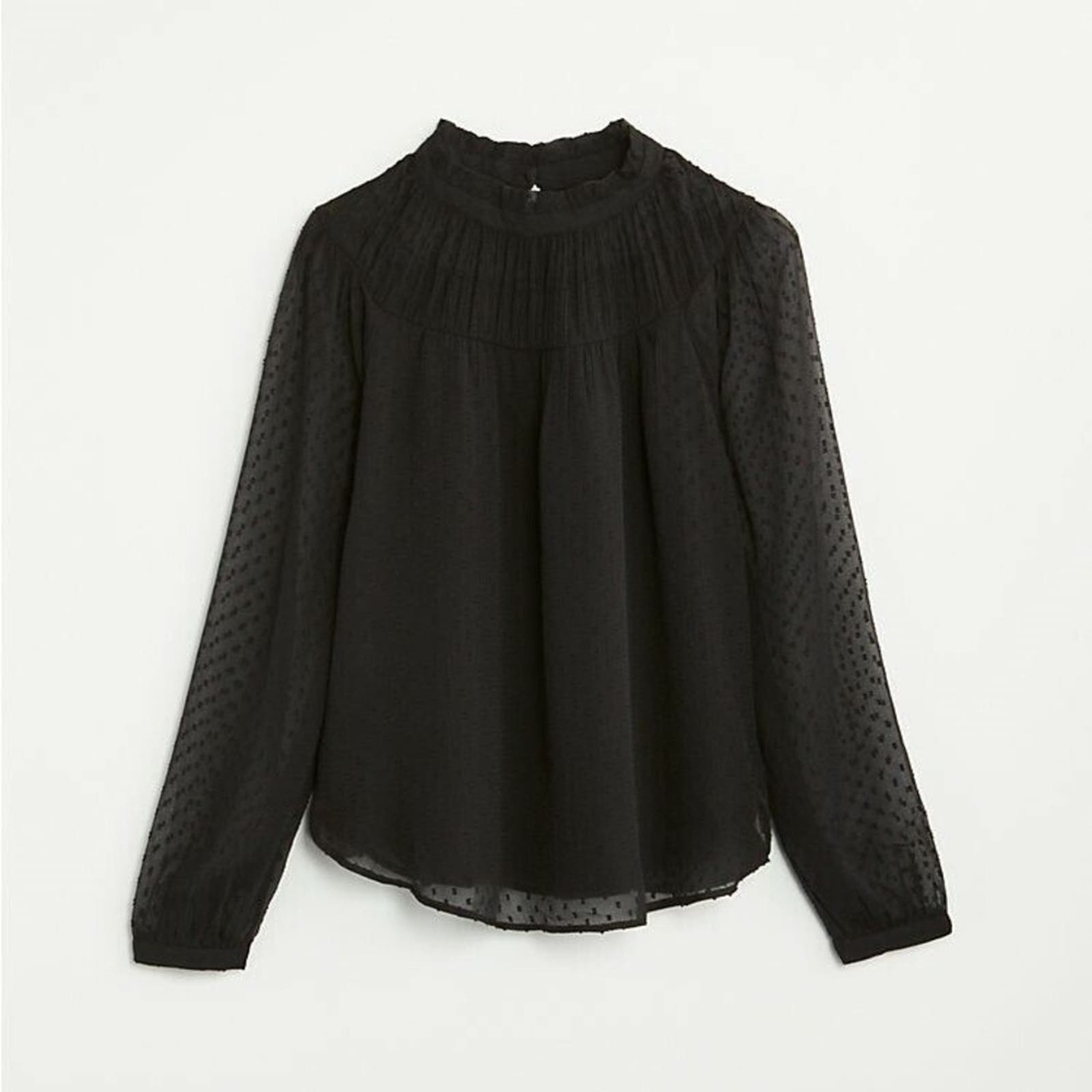 Ann Taylor Loft Clip Dot Shirred Ruffle Neck Blouse size Large
