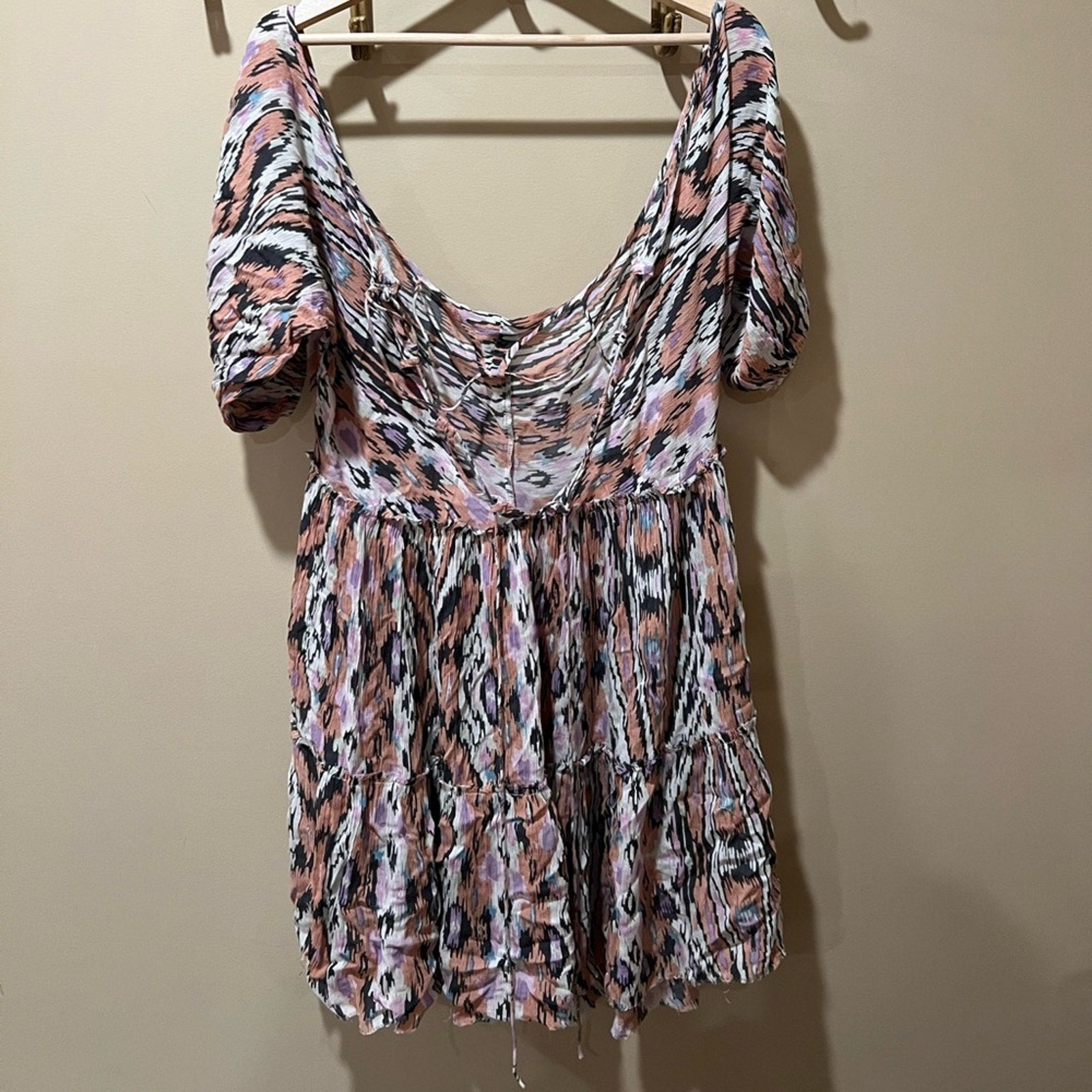 You were born to soar in the Free People Monarch Mini Dress. This cold shoulder dress is effortlessly relaxed in shape, with a muted abstract print and looped details giving it definite bohemian vibes.